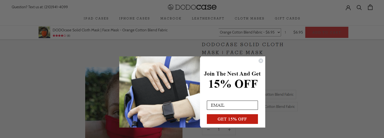 Here is an example of how to use engagement-based pop-ups. The phone case retailer, dodocase.com, shows the below pop-up to its users who have spent 15-30 seconds on their site.